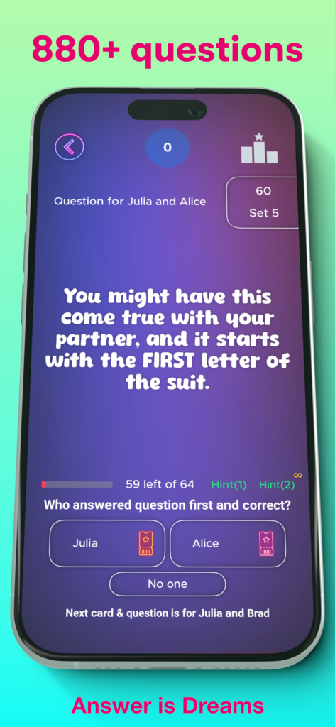 Easy – Will show card number, card suitname. And the matching words at bottom.