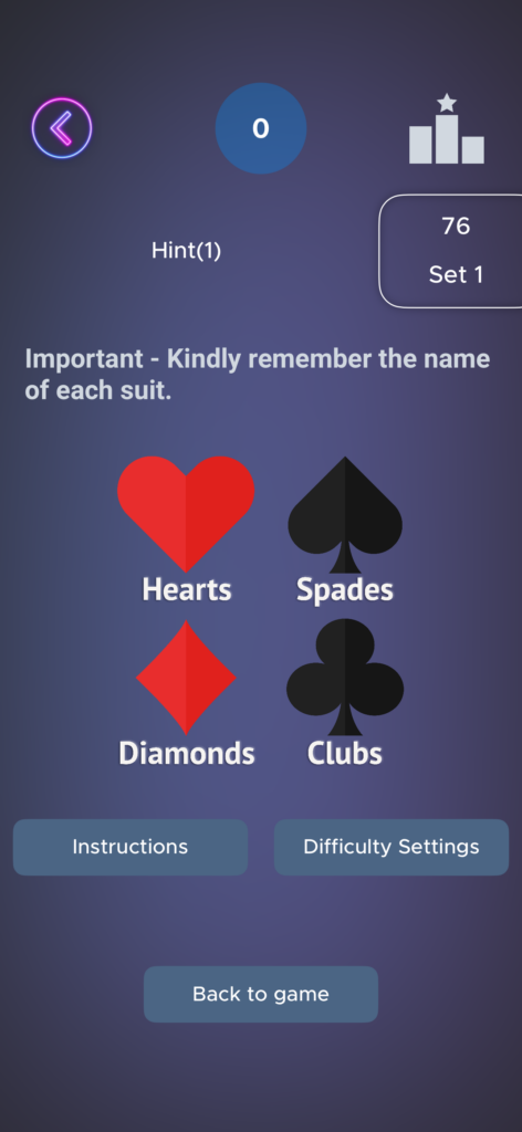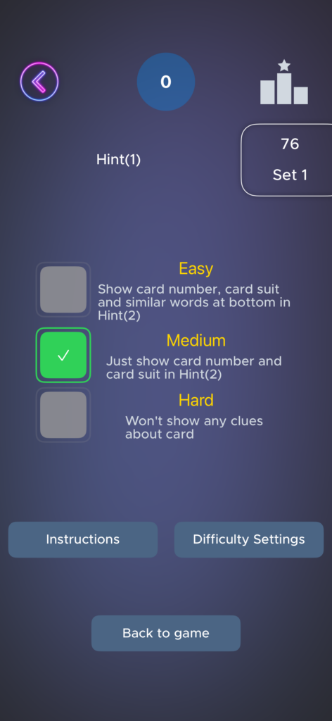 Hard – Recommended for experienced players. just the card is shown making the game lot of fun.